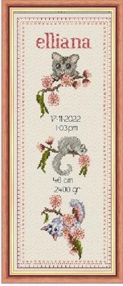 437.Possum Birth Sampler Stitch count 100x252 Finished size 18x46cm $10 by email