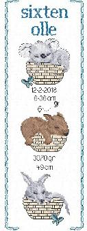 414.Baby Animals Birth Sampler Stitch count 105x320 Finished size 19x58cm $10 by email