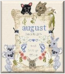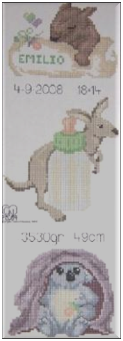 436.Animal Babies Birth Sampler Stitch count 100x252 Finished size 18x46cm $10 by email